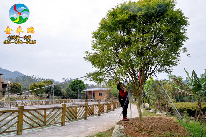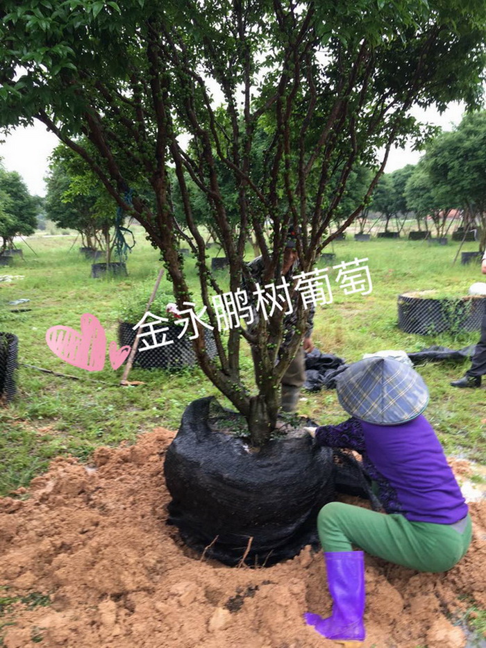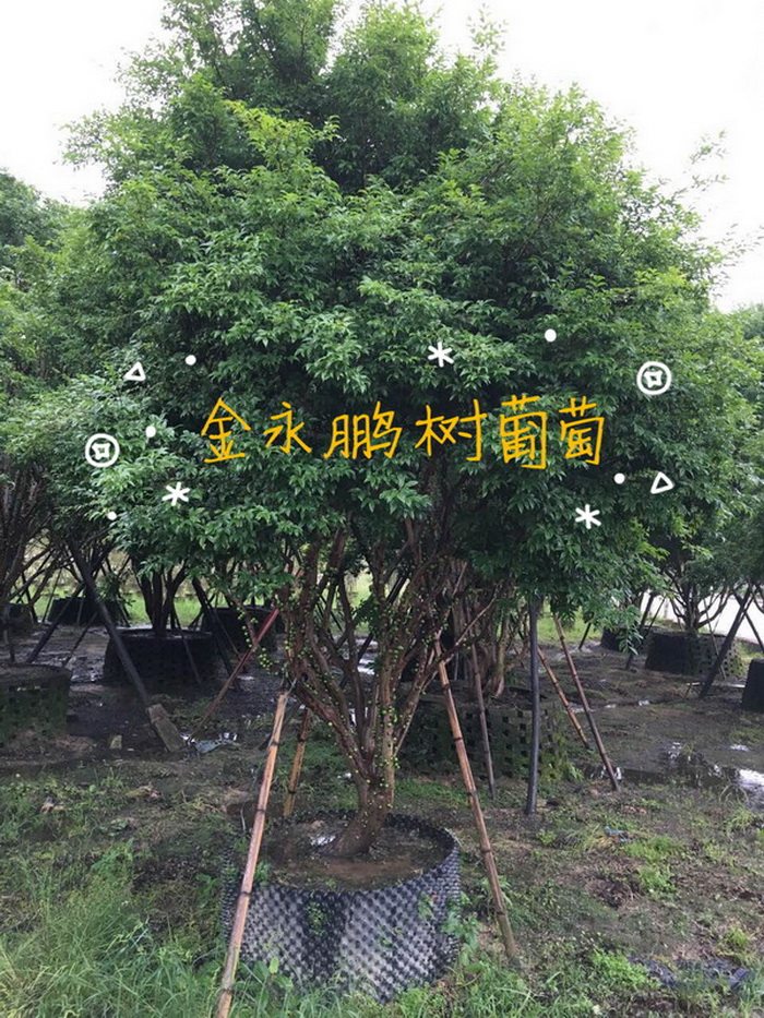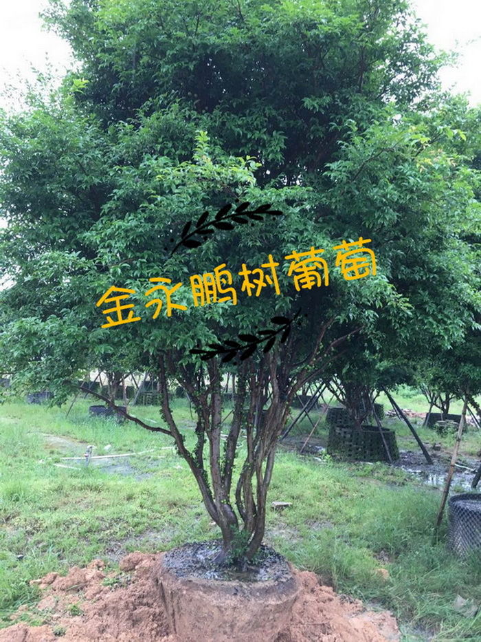 金永鹏嘉宝果十五年左右树龄:经过低温驯化,苗木全部假植过;树高度3-4米以上,树冠幅约3米左右,树径约15-20公分以上;树枝均匀树形优美产量高,一年可结果5-8次;庭院、别墅景观首选。